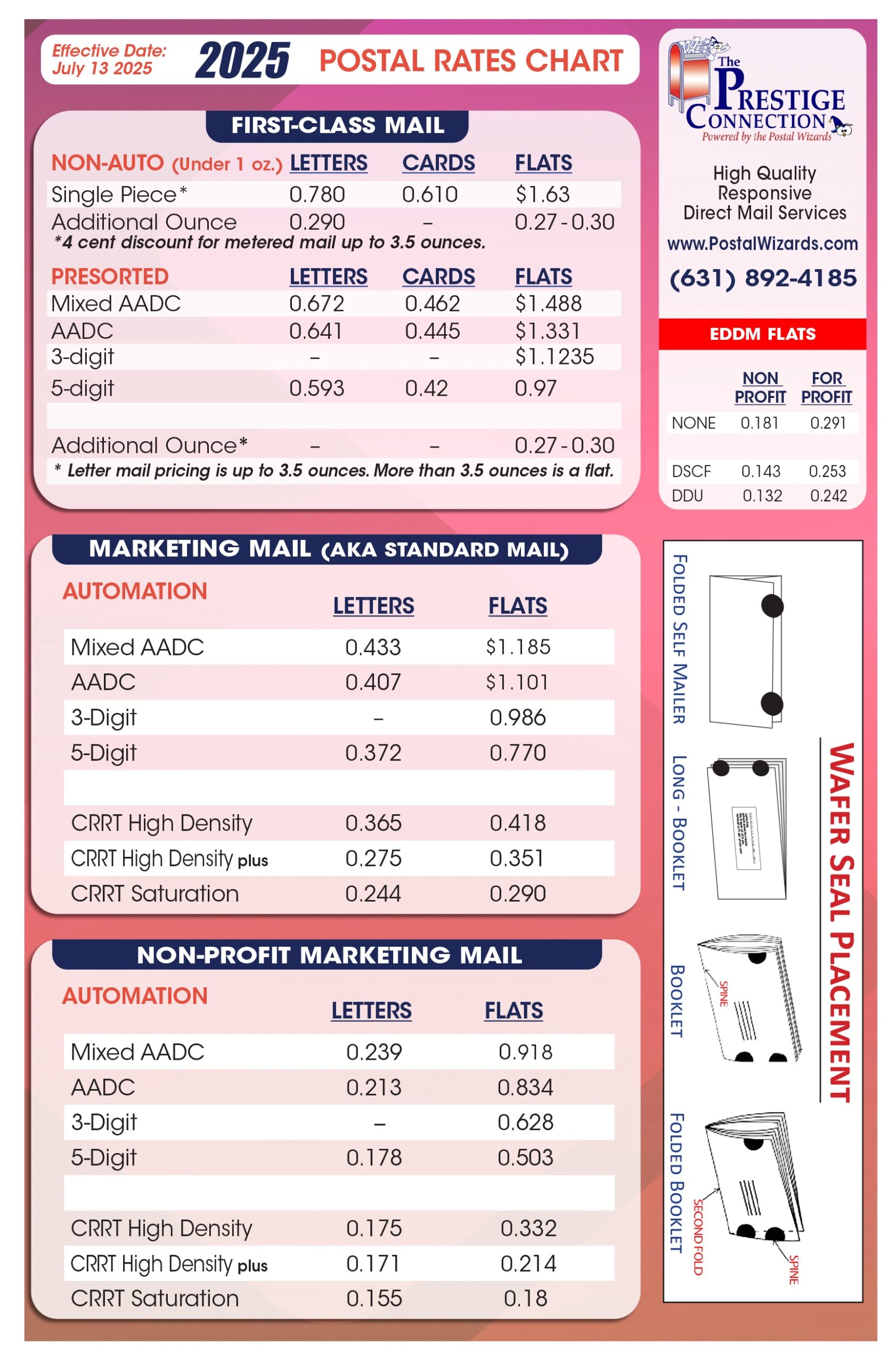 Remember the story of Goldie Locks. Just like little goldie, your letter-size mail must be just right. It can't be too square or too rectangular. Simply divide the high into the length. If the quotient is equal to or greater than 1.3 and equal to or less than 2.5, your design is good to go. Better yet, email your design to wendy.postalwizards@gmail.com, and we will check it free of charge.